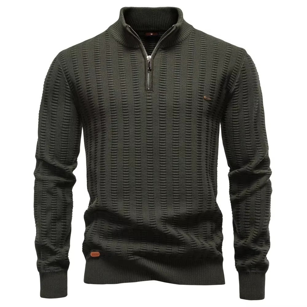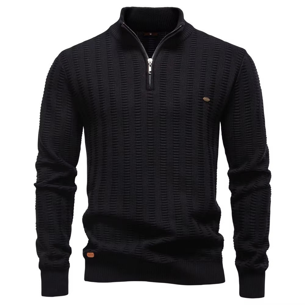 The Camionneur Relief Signature features a raised textured knit with a soft touch, combined with a 1/4 zip collar typical of trucker models. It provides both warmth and breathability to face the cold season with elegance.